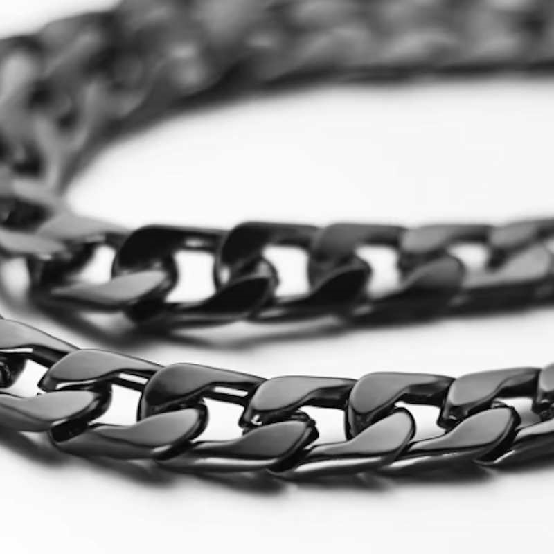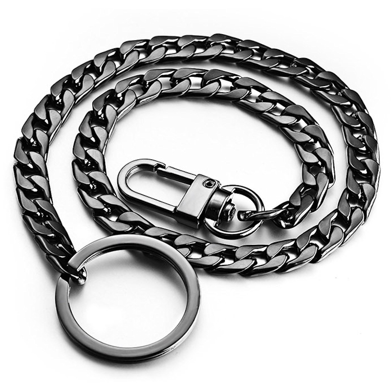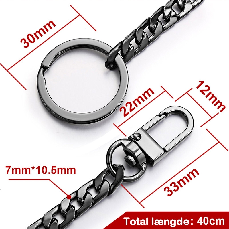 Bæltekæde-nøglekæde. Panserkæde med karabinhage. Sort. 40 cm.