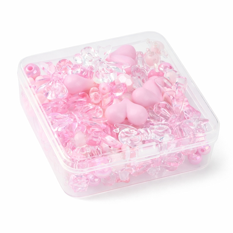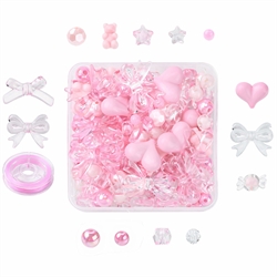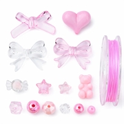 DIY perlesæt inkl. snor. 13 designs i pink nuancer m.m. 180 dele