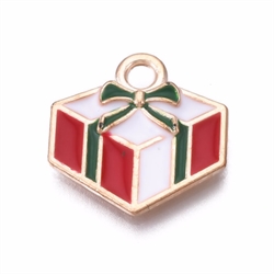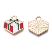 Julegave som vedhæng. Emaljeret og forgyldt. 16 mm