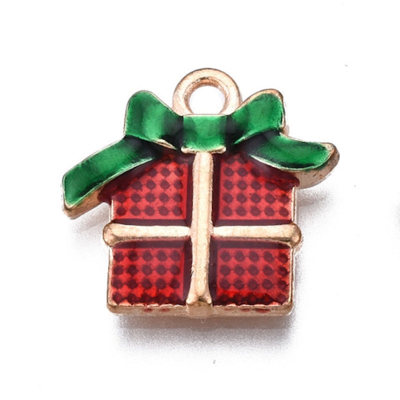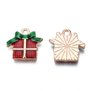 Julegave som vedhæng. Emaljeret og forgyldt. 15 mm