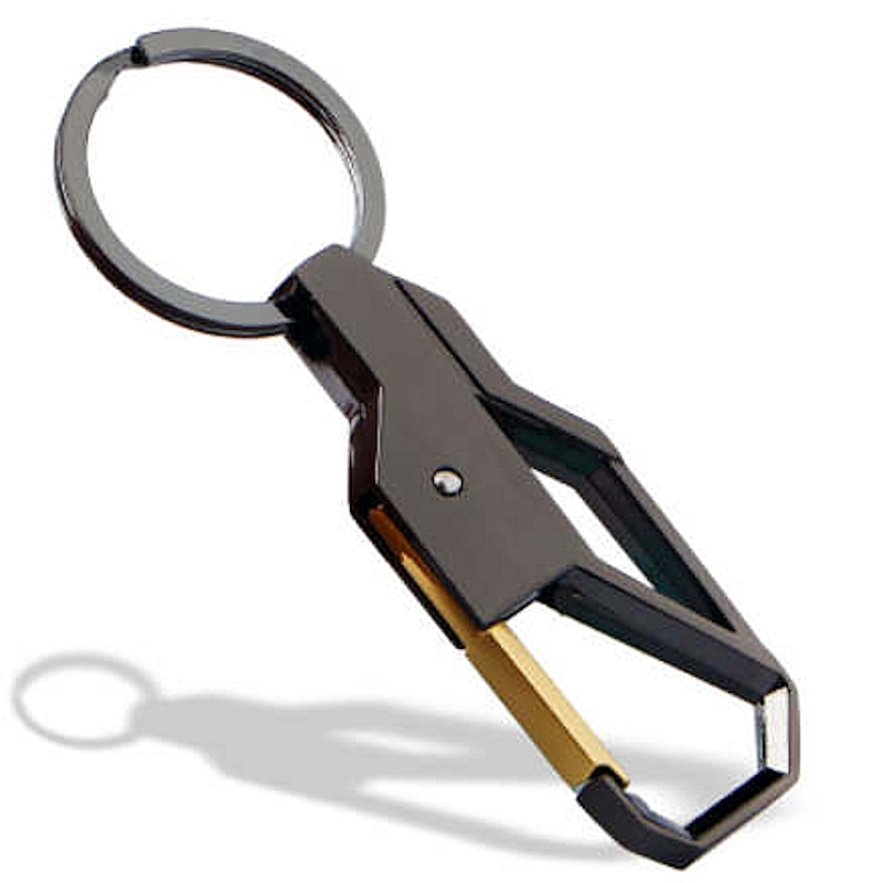 Karabinhage med fjederlukke og nøglering. Sort/Guld. 90 mm
