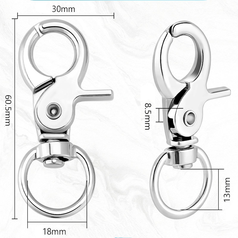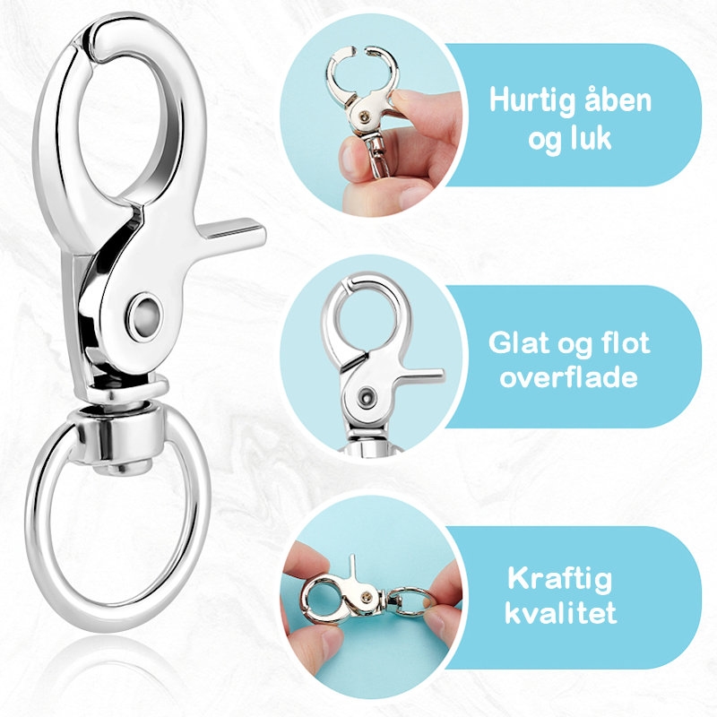 Karabinlås med svirvel. Kraftig. Platineret. 60 mm.