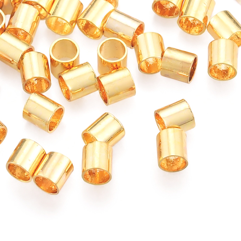 Klemperle - crimp perle. "Rør". 18k forgyldt. 2 mm. 25 stk.