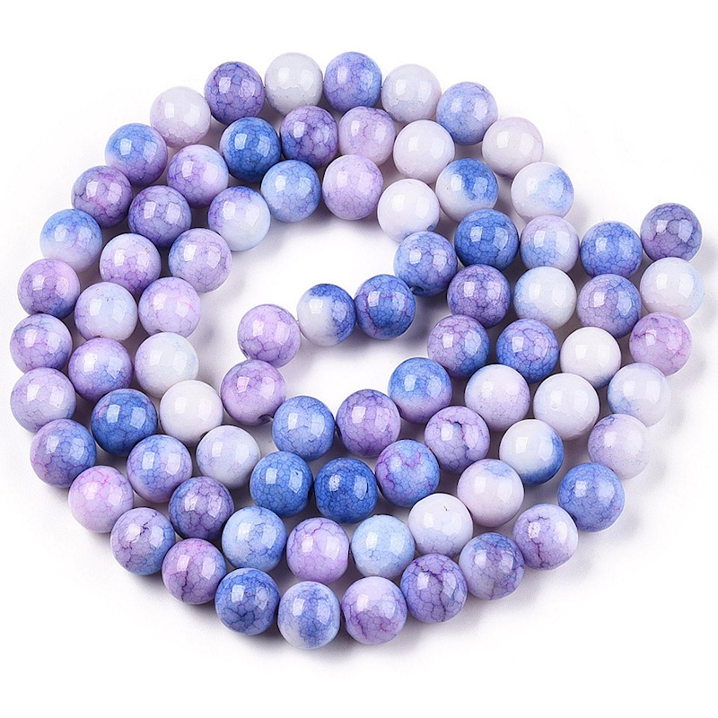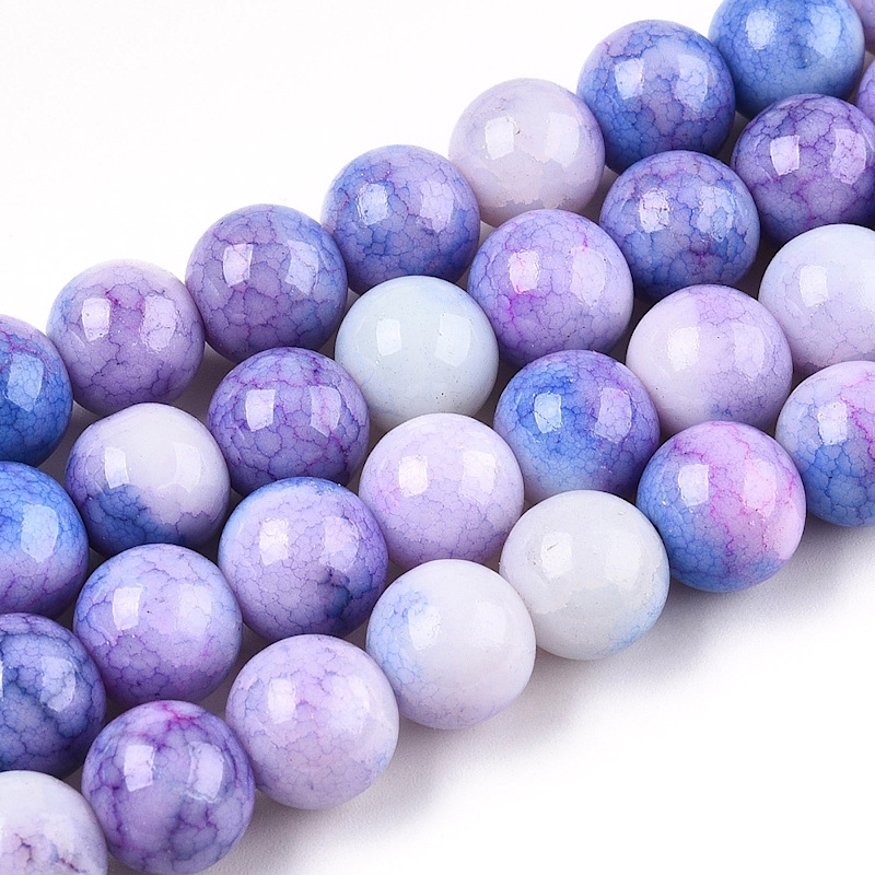 Krakelerede perler. 10 mm. Lilla-blå nuancer. 1 streng