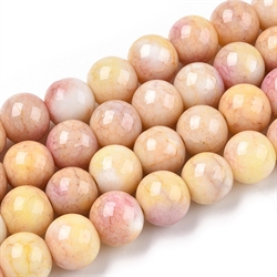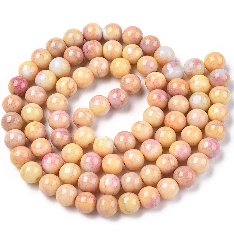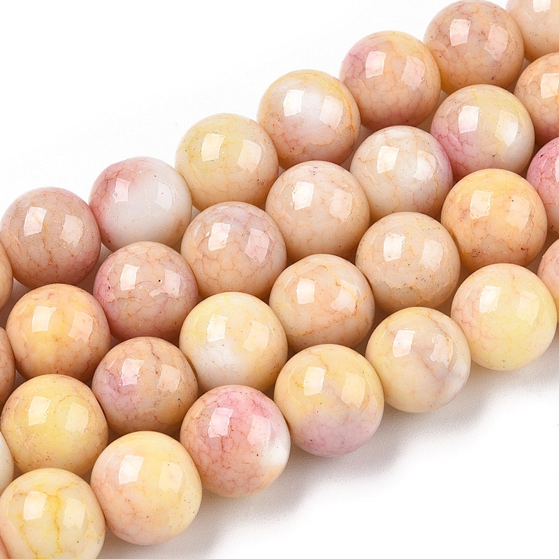 Krakelerede perler. 10 mm. Gul-rosa nuancer. 1 streng