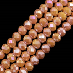 Krystalglas rondeller med glans. 8 mm. Rav/Mørk laks