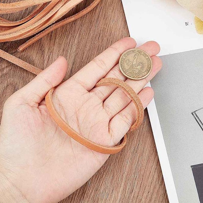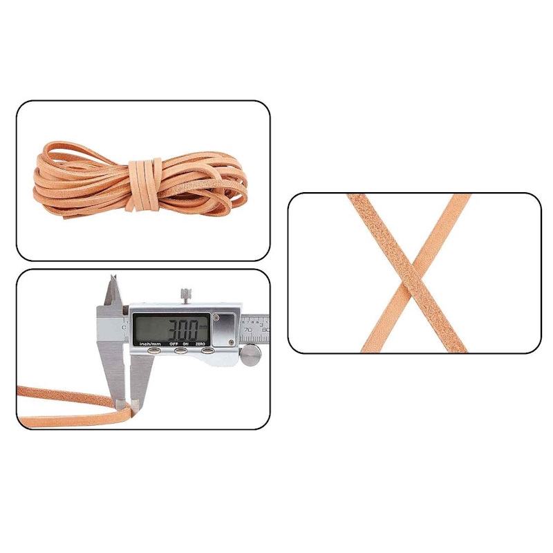 Lædersnor - flad. Natur med rustik/ru bagside. 5 x 3 mm. Pr. meter