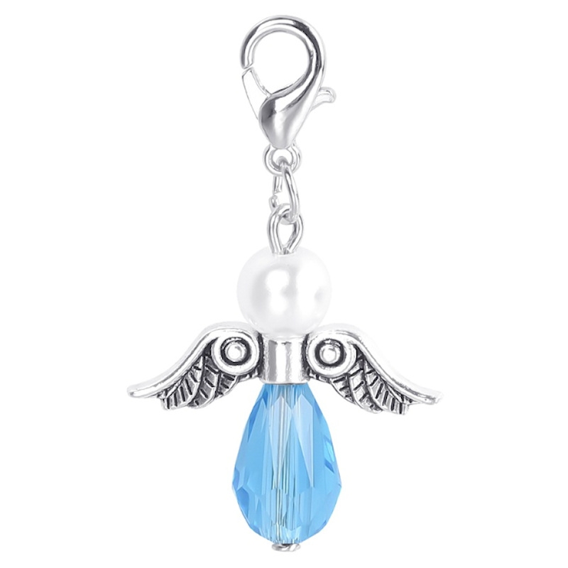 Lykkeengel m/ perle krystal dråbe. Lys blå. 40 mm
