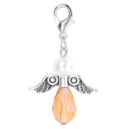 Lykkeengel m/ perle og krystal dråbe. Champagne. 40 mm