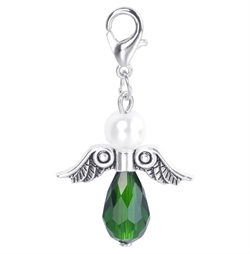 Lykkeengel m/ perle og krystal dråbe. Grøn. 40 mm