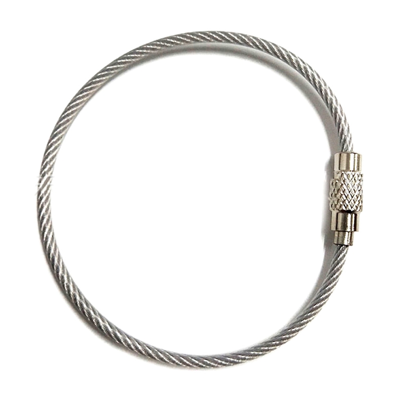 Nøglering af stålwire med skruelås. Stålfarve. 150x2 mm