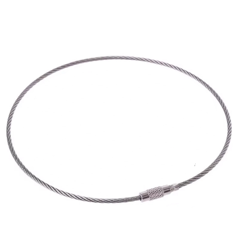 Nøglering af stålwire med skruelås. Stålfarve. 450 x 2 mm.