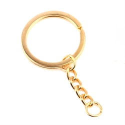 Nøglering med kæde og o-ring. Bred. Forgyldt. 60 mm