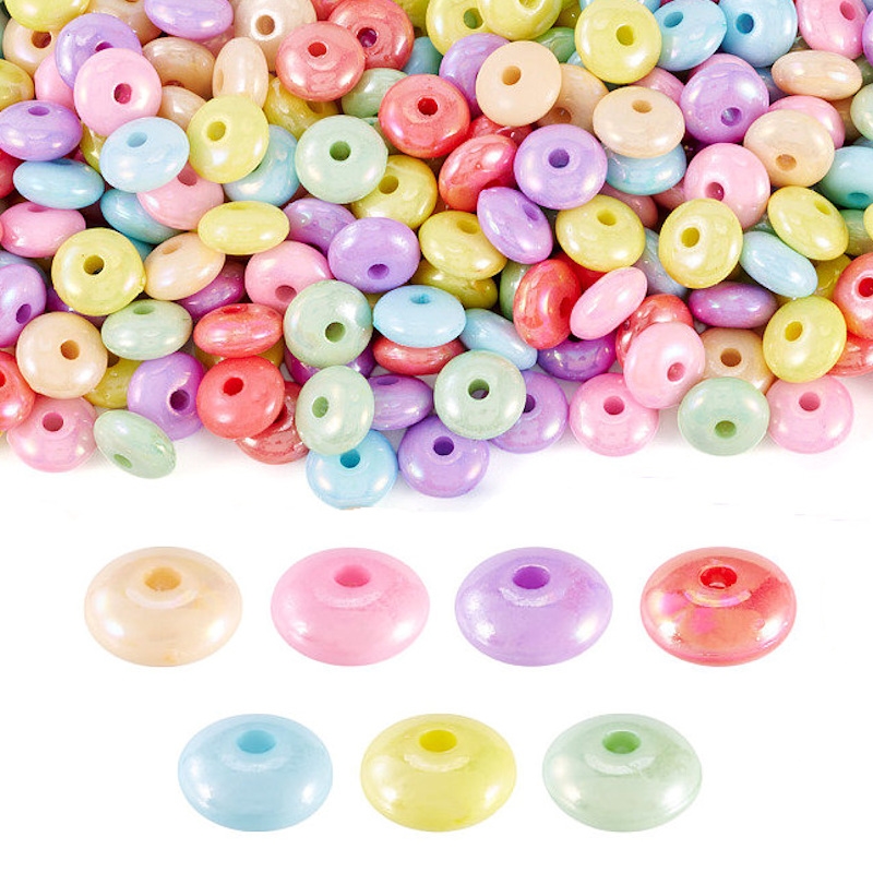 Perlesæt. Rondeller i pastel farver. 8x4 mm. 350 stk.