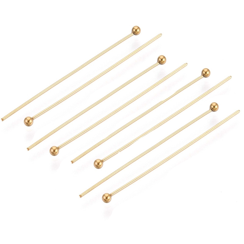 Perlestave m/ kugle. 18k PVD forgyldt stål. Grade A+. 35 mm. 10 stk.