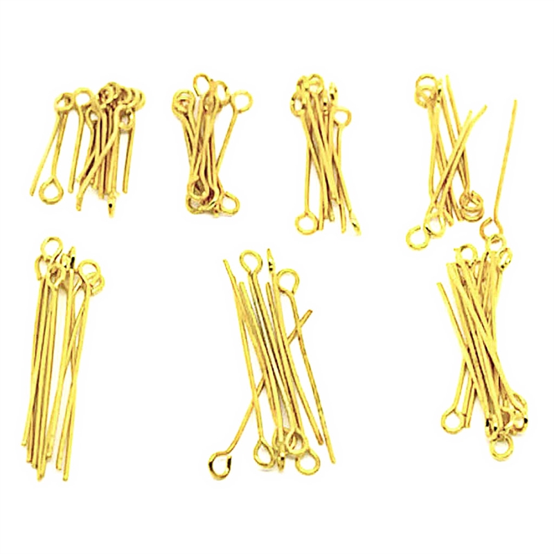 Perlestave med øje. Sortiment. Forgyldt. 16-30 mm. 700 stk.