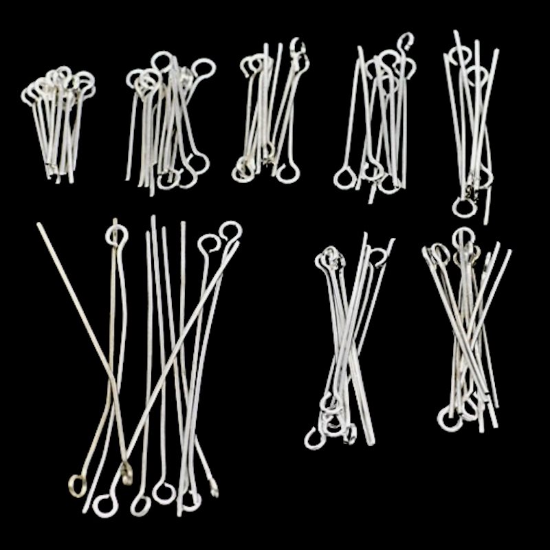 Perlestave med øje sortiment. Forsølvet. 16 - 50 mm. 800 stk.