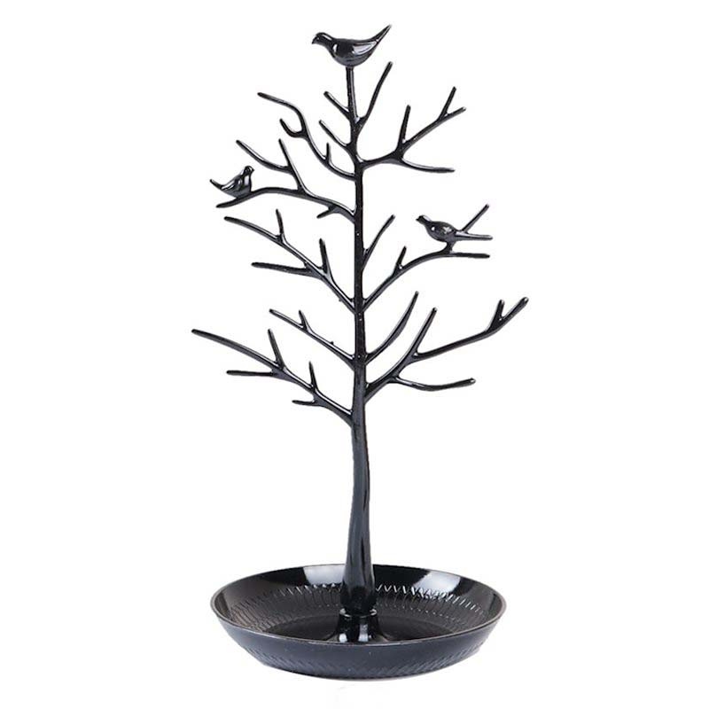 Smykkestativ "Træ med fugle" til øreringe, kæder m.m. Sort. 32 cm