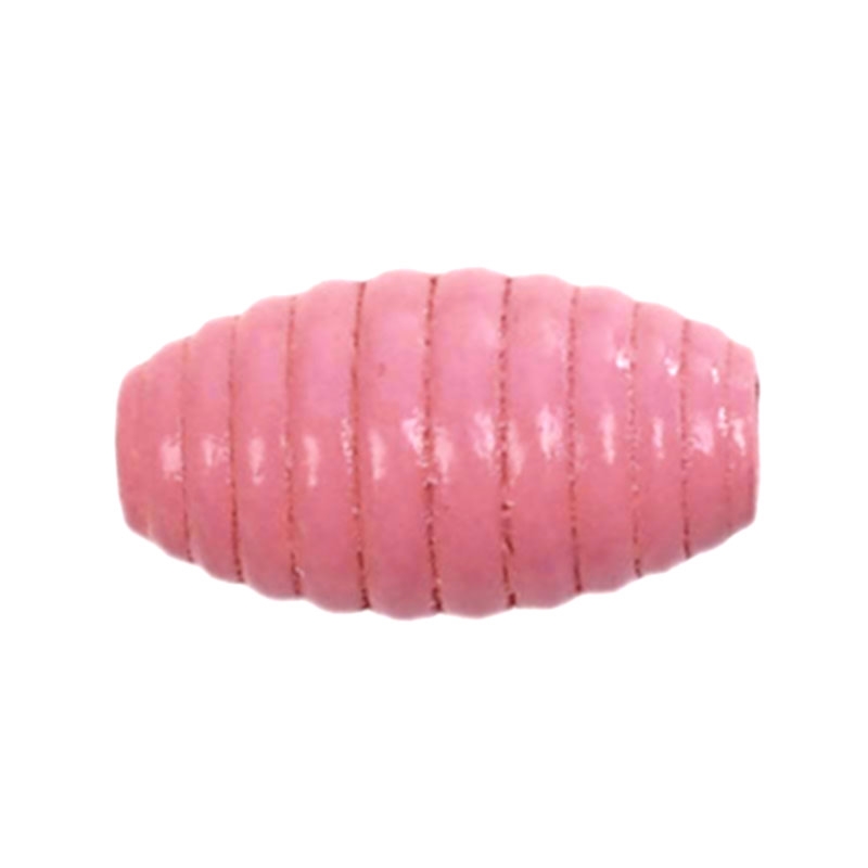 Træperle med riller i bikube look. 25x14 mm. Pink