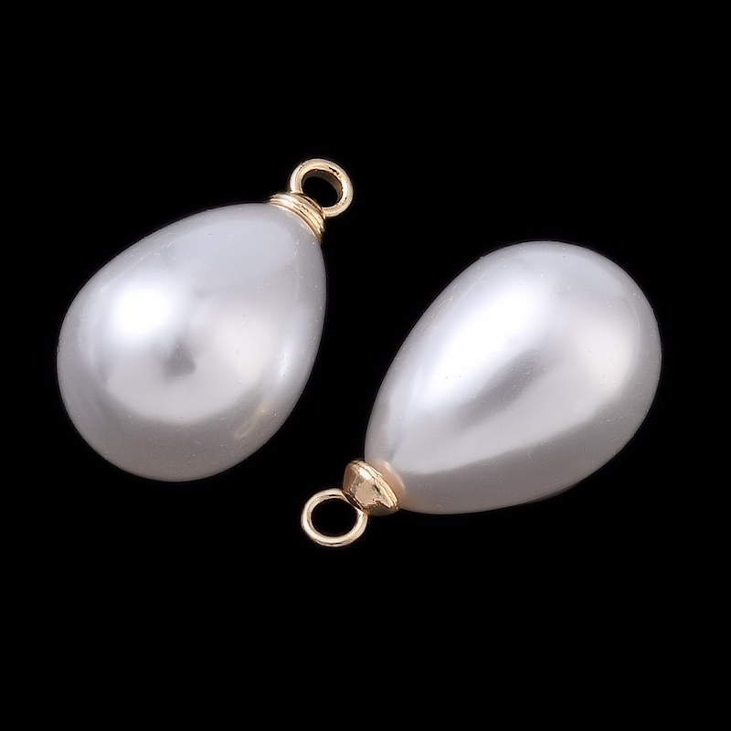 Vedhæng dråbe i perlelook. Forgyldt. Off-white. 21 mm 1 stk.