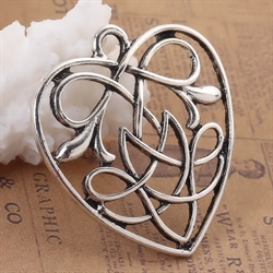 Vedhæng. Filigrant hjerte. Tibetansk sølv. 31 mm