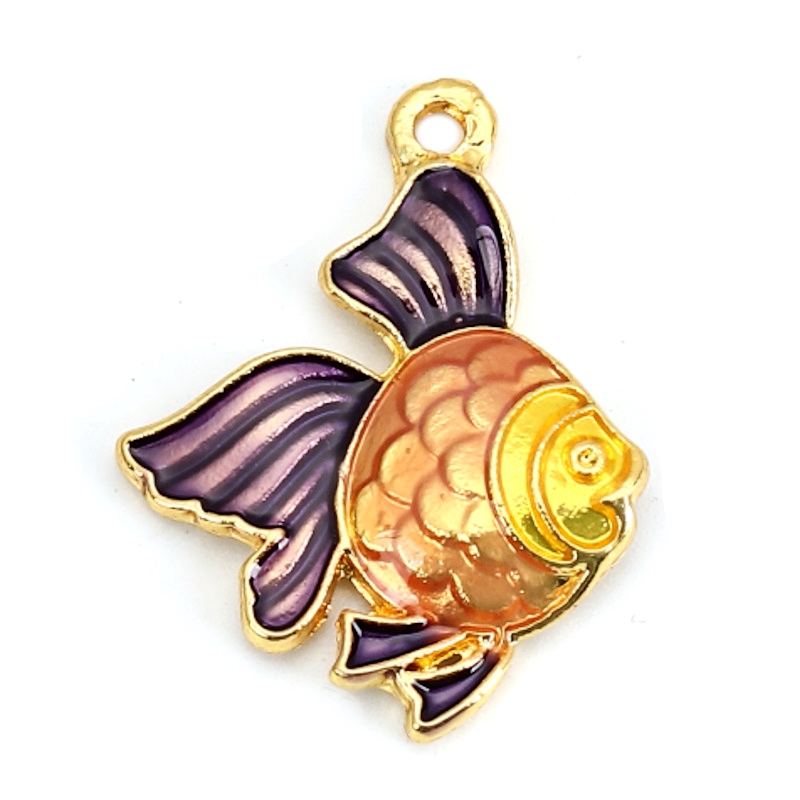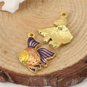 Vedhæng. Guldfisk. Emaljeret og forgyldt. 23 mm
