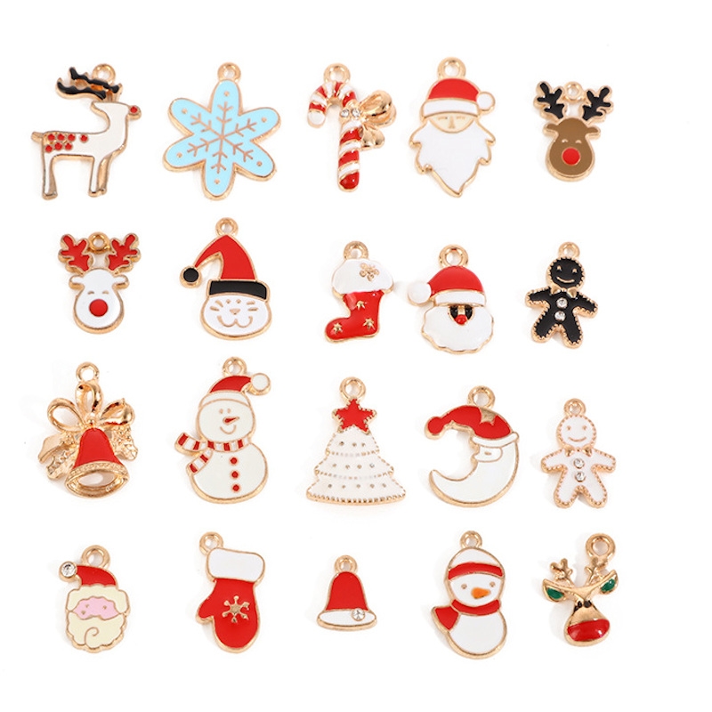 Vedhæng. Julemotiver. Emaljeret og forgyldt. 20 stk. forskellige