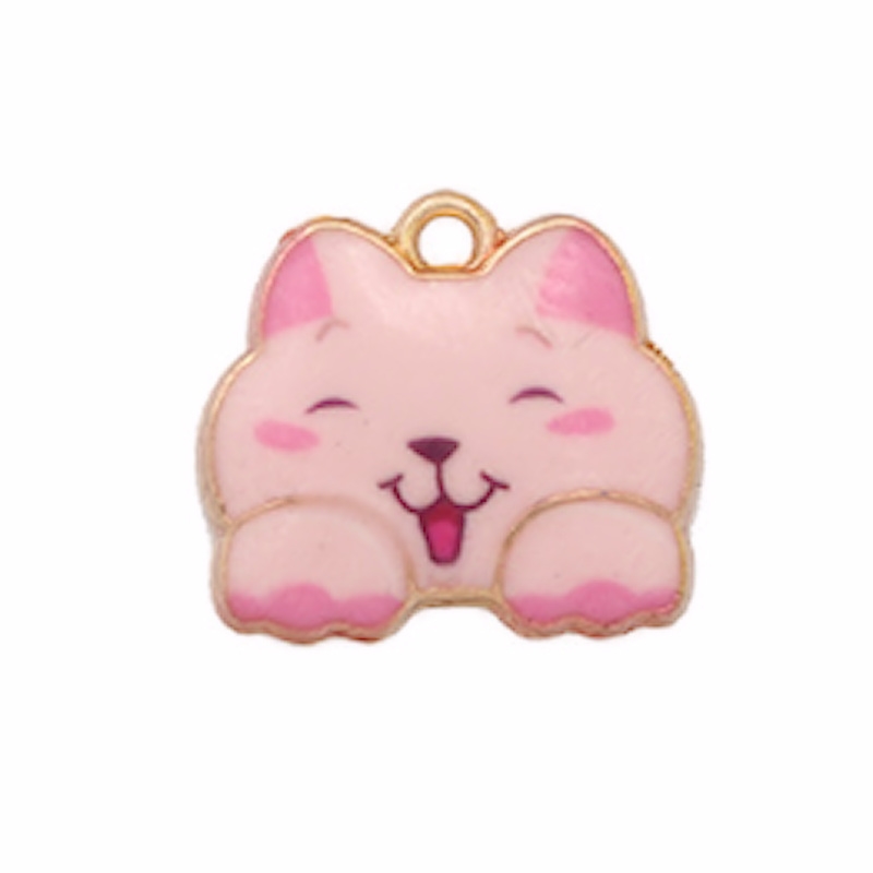 Vedhæng. Kattekilling. Forgyldt og emaljeret. 18 mm. Lyserød. Til halskæder m.m