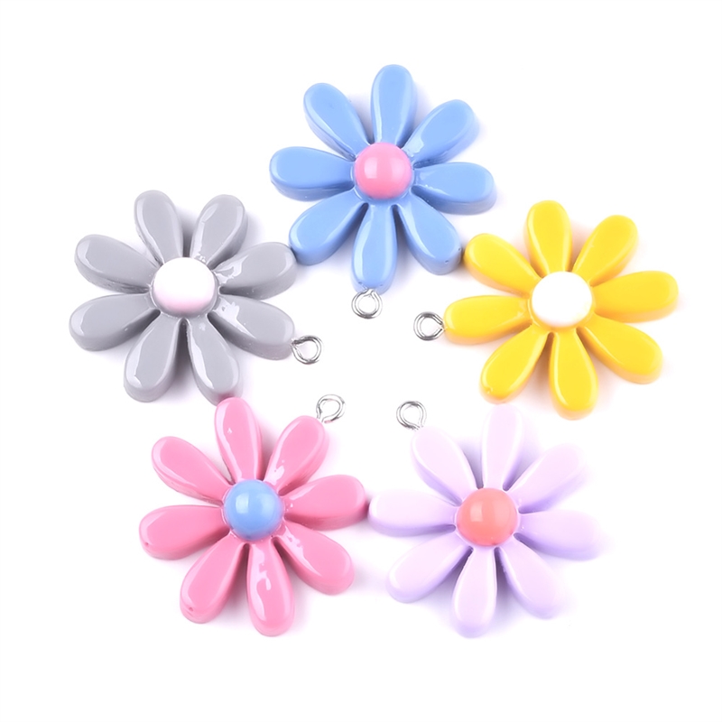 Vedhæng. Marguerit. Resin. Pastel mix. 33 mm. 20 stk.